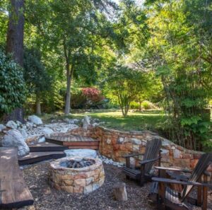 Outdoors, a large fire pit area creates a natural gathering point. Surrounded by lawn and mature trees, it offers a grounding setting for evening circles, storytelling or integration under the stars. The studio is fully equipped to support music and sound based practices, allowing facilitators to create a rich and immersive sensory environment.
